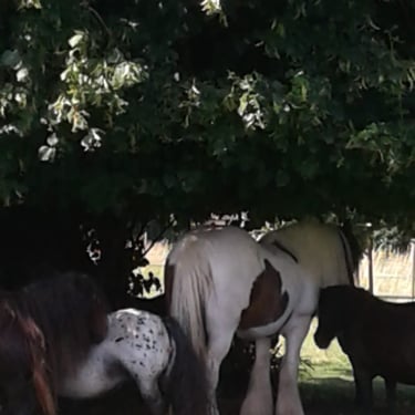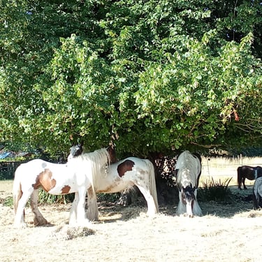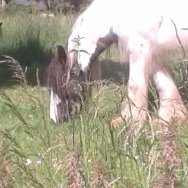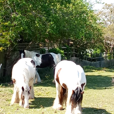 The street cobs have joined the Shetland Pony herd and now serve as their protectors.