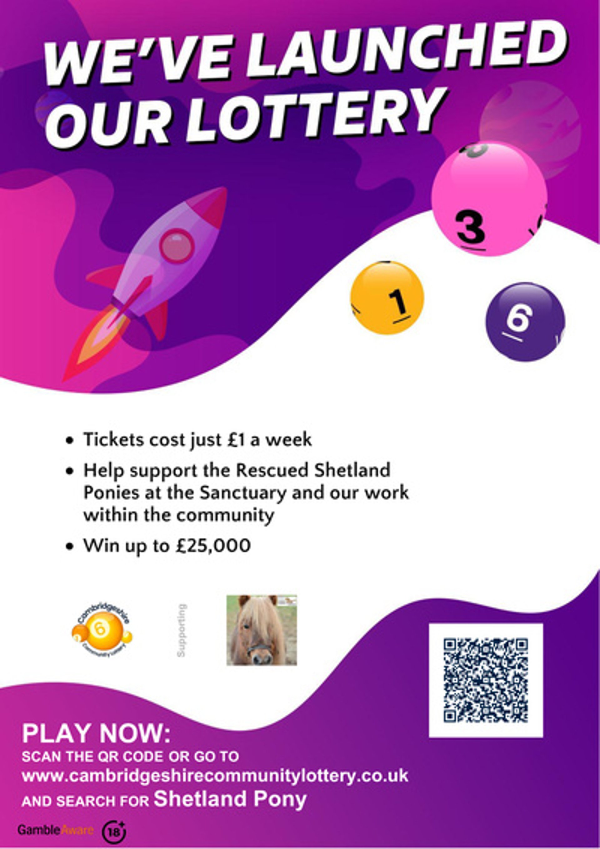 Please note: The Shetland Pony Welfare Trust weekly lottery operates through The Cambridgeshire community lottery which means that although a portion proceeds from your entry fees come to the charity to help us to continue our work, the prize pay outs do not impact on charity funds.