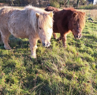 Hello from Yahoo and Google! We are residents at The Shetland Pony Welfare Trust Sanctuary, and it looks like this will be our forever home due to our special needs. We've been together since we were foals and are lucky to live side by side at the sanctuary. Life here is great, and we even have jobs! Our latest role is managing the S.P.W.T. Amazon Wish List, and we've been asked to share it with you so you can take a look and consider supporting us by purchasing a gift from the list.